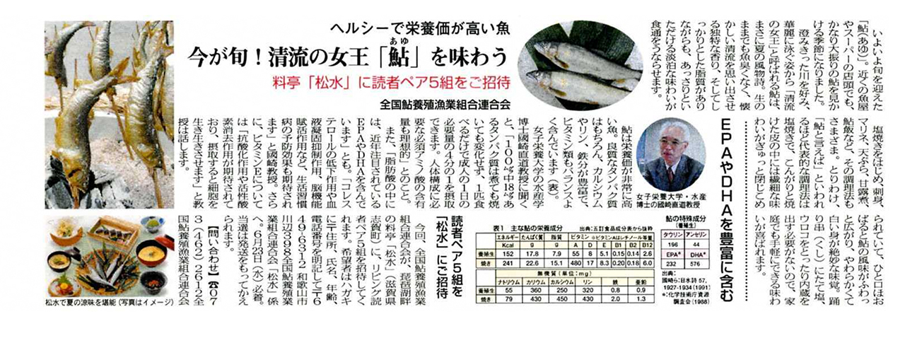 ■読売新聞・中日新聞・日経新聞にて「6月1日は『鮎の日』」告知広告掲載。